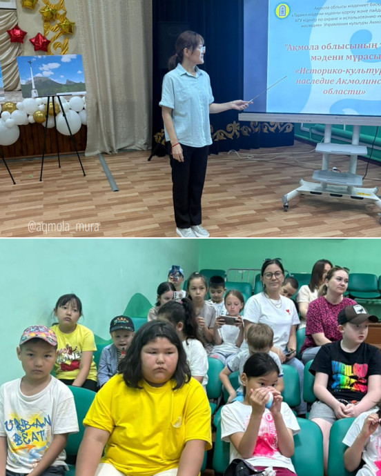 КГУ «Центр по охране и использованию историко-культурного наследия» управления культуры Акмолинской области провел урок истории по теме «Көкшетау қаласының тарихи-мәдени мұра ескерткіштері» в летнем оздоровительном лагере для 1-4 класов школы-лицей №21 г. Кокшетау. В ходе занятия были представлены сведения о памятниках г. Кокшетау. Основной целью урока было расширение знаний учащихся о богатом культурном наследии родного края, развитие патриотизма и уважения к историческому наследию Казахстана.