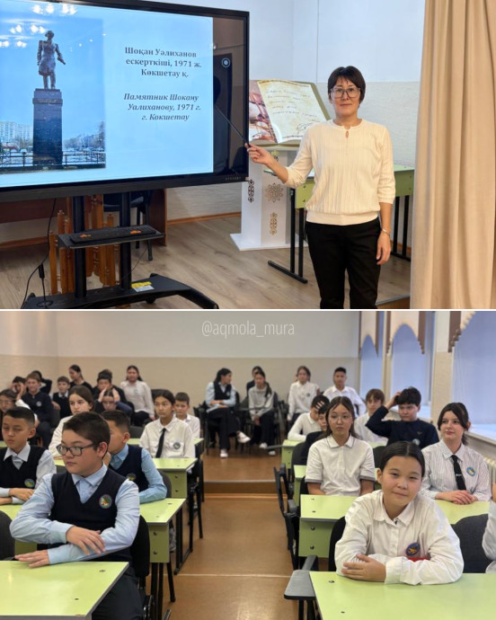 КГУ «Центр по охране и использованию историко-культурного наследия» управления культуры Акмолинской области провел для учащихся 7 классов многопрофильная гимназия №5 «Таңдау» г. Кокшетау урок истории на тему: «Ақмола облысының тарихи-мәдени мұрасы». В ходе занятия были представлены некоторые сведения о памятниках Акмолинской области. Основной целью урока было расширение знаний учащихся о богатом культурном наследии родного края, развитие патриотизма и уважения к историческому наследию Казахстана, а также укрепление связи молодежи с традициями и ценностями своего народа.