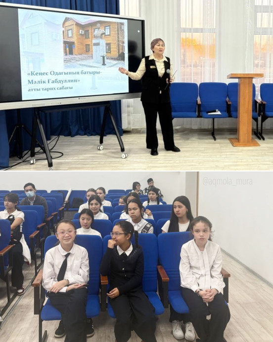 КГУ «Центр по охране и использованию историко-культурного наследия» управления культуры Акмолинской области провел урок истории на тему: «Ақмола облысының тарихи-мәдени мұрасы» для учащихся 7 классов СШ №7 г. Кокшетау п. Станционный. В ходе занятия были представлены некоторые сведения о памятниках Акмолинской области. Основной целью урока было расширение знаний учащихся о богатом культурном наследии родного края, развитие патриотизма и уважения к историческому наследию Казахстана, а также укрепление связи молодежи с традициями и ценностями своего народа.